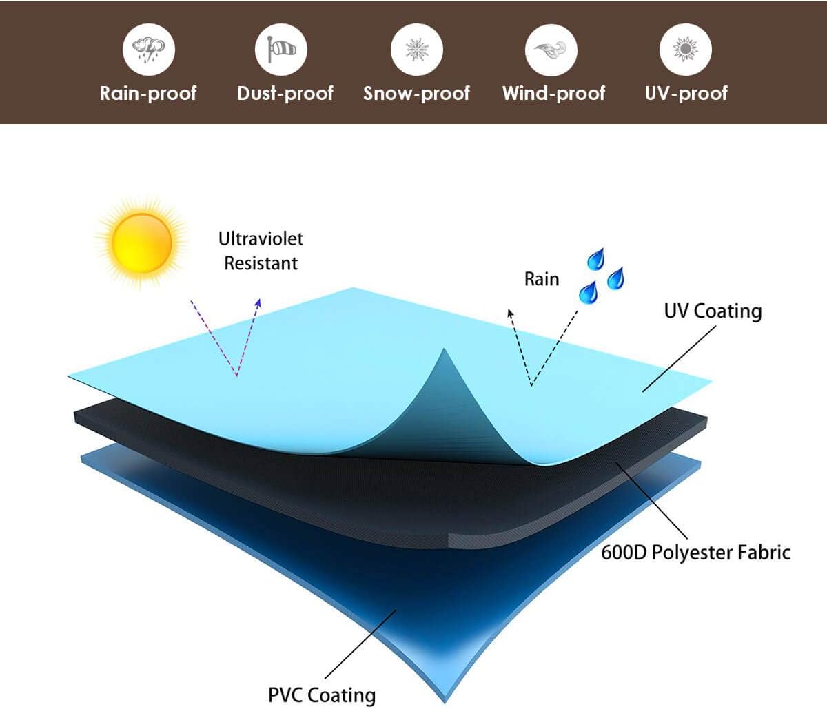- Maximum Protection: Our heavy-duty outdoor sofa covers are made of 600D polyester Oxford fabric and a PVC coating that is weather-resistant, waterproof, and dust-proof. It provides maximum protection for your patio sofa from outdoor elements such as sun, rain, wind, hailstorms, bird droppings, and more.
